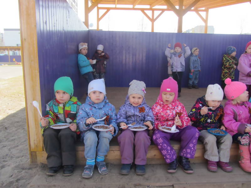 А на улице детей и гостей ждали военные игры и, конечно, полевая кухня! Солдатская каша всем пришлась по вкусу!