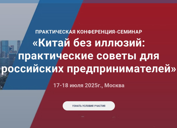 Российско-Китайская Палата приглашает принять участие в практическом семинаре–конференции «Китай без иллюзий: практические советы для российских предпринимателей» (г. Москва, 17-18 июля 2025 года)