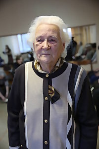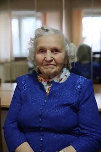 Пришедшая вместе с внуком Женей хрупкая 90-летняя Надежда Александровна Коротаева, поделилась своими воспоминаниями о военном времени.
