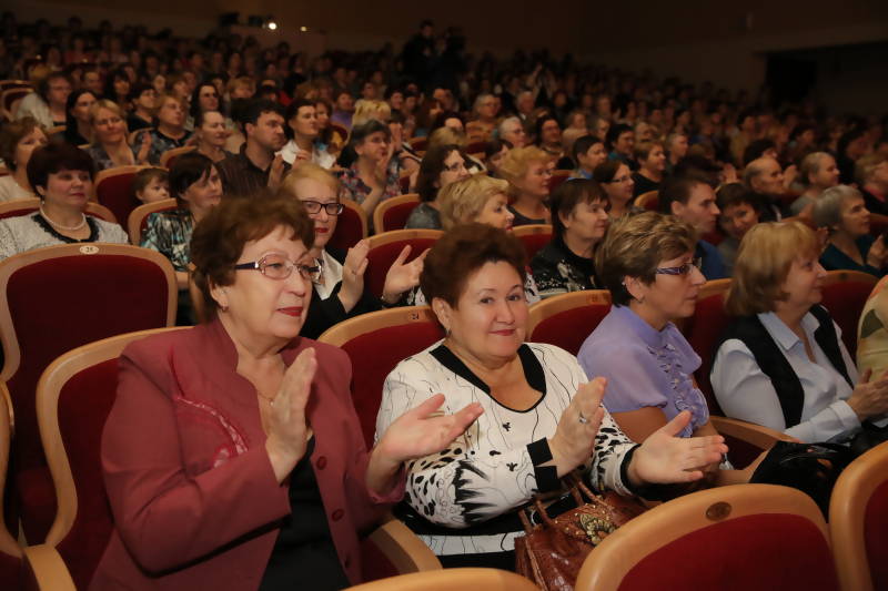 Долгими аплодисментами зал приветствовал преклонного возраста горожанок – тружениц тыла.