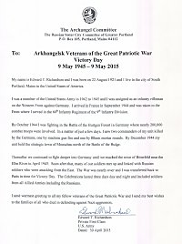 Сегодня ветераны из США поздравляют своих боевых товарищей из Архангельска и разделяют с ними радость великого и славного Дня Победы.