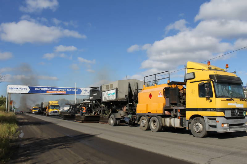 Работы выполняет ООО «Севзапдорстрой» с использованием современной технологии, позволяющей за минимальный срок выполнять большой объем ремонта дорожного полотна. Три тягача фирмы SCANIA буксируют огромные установки, которые нагревают асфальтовое полотно дороги, превращая его на глубину до 10 см в мягкую податливую массу. Четвертый элемент автопоезда – машина, соединяющая в себе фрезу для снятия асфальта и мини завод по приготовлению и укладке нового покрытия.