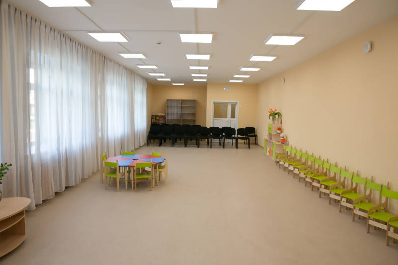 Защищать юных горожан от болезней будут фельдшер и врач. Для них в соответствии со всеми требованиями оборудован медицинский блок на втором этаже. В противоположном крыле расположен большой