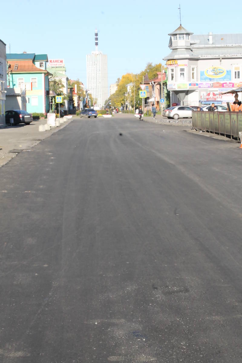 Субподрядчик МУП «Архкомхоз» - ЗАО «АГСУМ» провело фрезерование дороги, завершило укладку выравнивающего и нового верхнего слоя асфальтобетонного покрытия. Также выполнены работы по ремонту 10 горловин люков и дождеприемных колодцев.