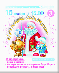 В Ломоносовском Дворце культуры 15 ноября в 15.00 часов Дед Мороз приглашает гостей на празднование своего Дня рождения.