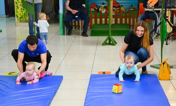 Праздник для маленьких спортсменов проходил на трех площадках. Наши участники ползали, ходили за ручку с родителями, преодолевали различные препятствия.