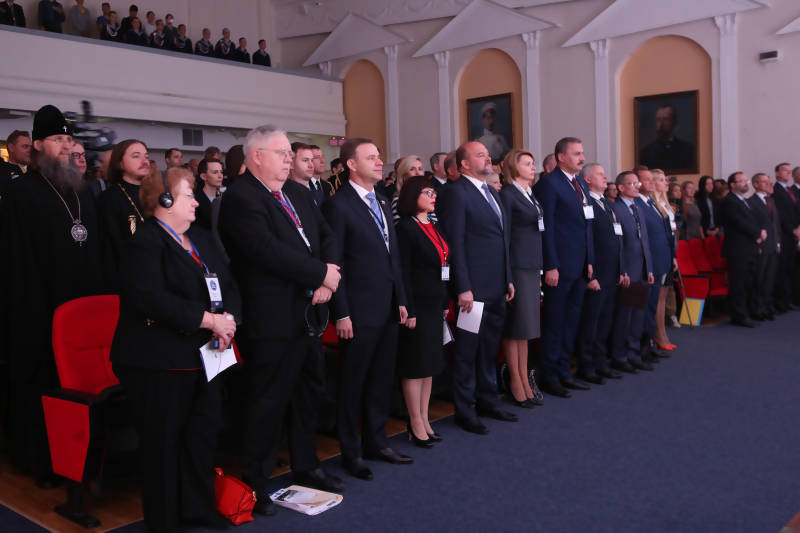 Продолжило торжественную церемонию открытия форума выступление доктора исторических наук, научного директора Российского военно-исторического общества Михаила Мягкова, который зачитал поздравительный адрес от председателя попечительского совета РВИО Владимира Мединского.