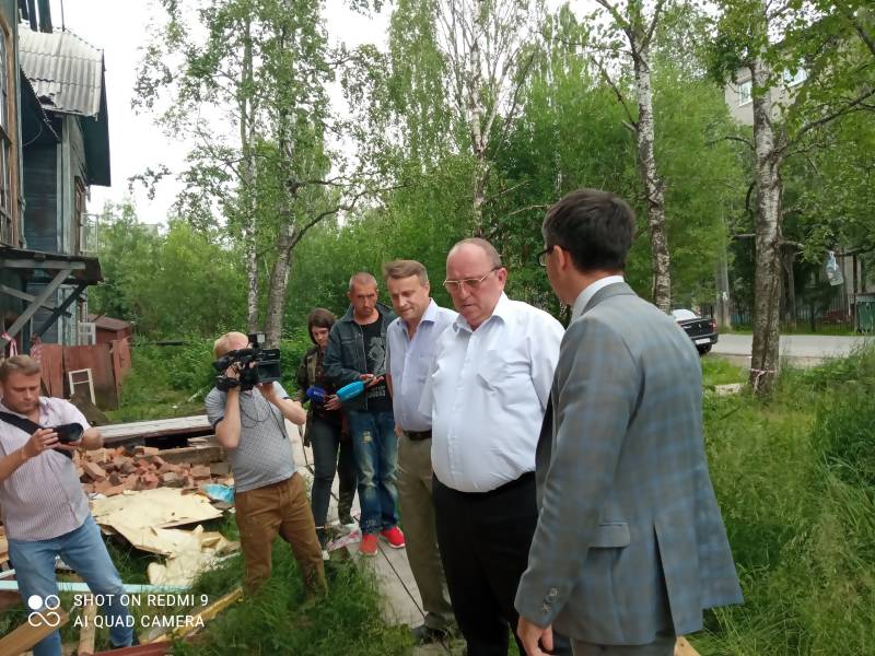 На минувшей неделе в столице Поморья со свай сошли два жилых деревянных дома. Сегодня для окончательной оценки ситуации на месте побывали заместитель главы Архангельска по городскому хозяйству Владислав Шевцов и директор департамента городского хозяйства Владимир Шадрин.
