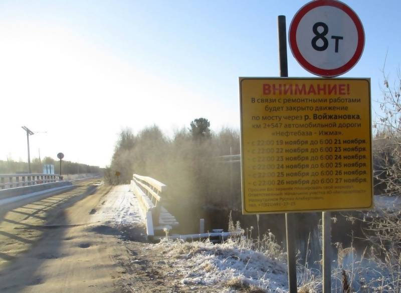 Министерство транспорта Архангельской области информирует: проезд по мосту через реку Войжановка будет ограничен в связи с ремонтными работами с 19 по 27 ноября.По результатам экспертного обследования моста через реку Войжановка на 3 километре дороги регионального значения Нефтебаза – Ижма были выявлены дефекты, негативно влияющие на грузоподъемность и долговечность сооружения.