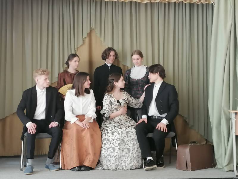 Каждый год выпускники гимназии ставят отчётный спектакль на английском языке. В этом году ребята под руководством своего наставника Марины Чухчиной перенесли на школьную сцену пьесу Оскара Уальда "Как важно быть серьёзным". Подготовка к премьере заняла полгода.