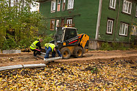 Сейчас специалисты занимаются самым протяженным участком - вдоль пр. Московский от ул. Павла Усова до ул. Смольный Буян. Также завершается обустройство пешеходной дорожки у детского сада «Земляничка» по Новгородскому проспекту. Одновременно техника вышла на ремонт тротуара на Троицком проспекте, где находится автобусная остановка. Применяется садовый борт – тротуары приобретают законченный и аккуратный вид.