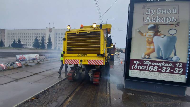 На пр. Троицкий вдоль колледжа культуры и искусства по четной стороне от ул. Садовая до ул. Вологодская и по нечетной стороне от ул. Вологодская до ул. Шубина идет фрезерование,  на пр. Новгородский от ул. Урицкого до ул. Романа Куликова, тротуаре по пр. Троицкому у остановки «Петровский парк» фрезерование выполнено, заход техники для ремонта тротуаров на ул. Дачная, 35 планируется в четверг.
