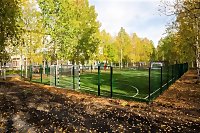 На месте старой спортплощадки появилось красивое футбольное поле с искусственной травой и ограждением.