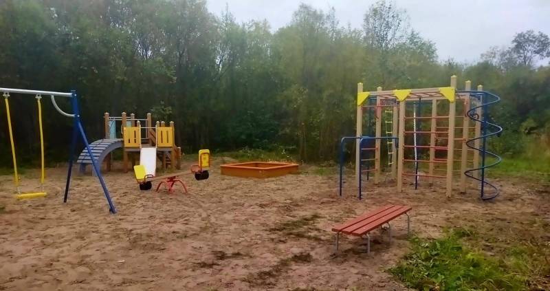 У дома № 10 по ул. Центральной появились песочница, качели с двумя подвесами – для малышей и ребят постарше, спортивный комплекс с рукоходом и гимнастическими кольцами, качалка-балансир, скамейки, а также игровой комплекс с горкой и канатом.