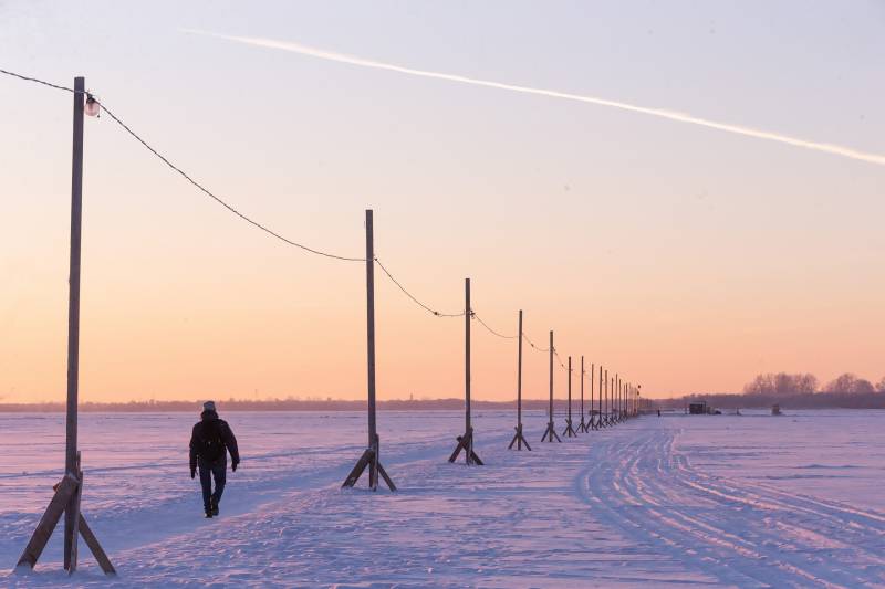Монтаж пешеходных переправ начнется после установления безопасной толщины льда. В прошлом году первая переправа открылась 5 декабря, а в 2020 году лишь 29 декабря.