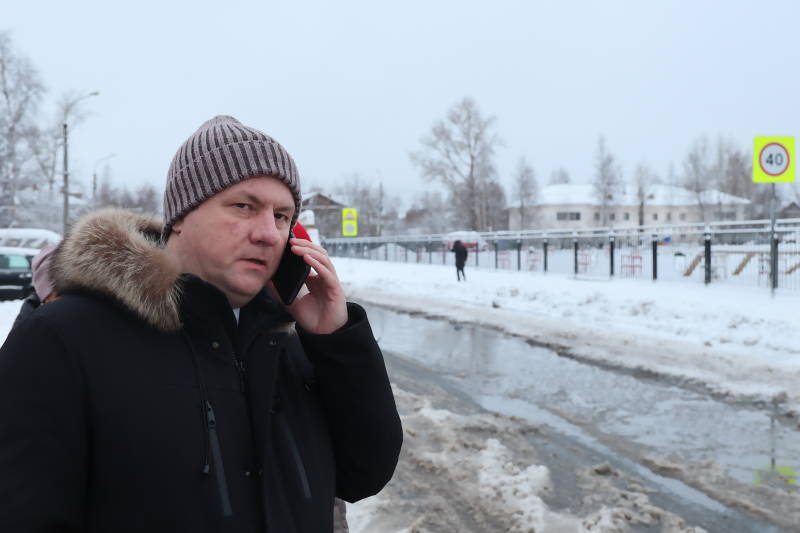 Во время рабочей поездки Дмитрий Морев позвонил руководству «РВК-Архангельск»: требуется срочно устранить утечку у школы и больницы на ул. Ярославской, откачать воду и убрать наледь. А МДУ должны в течение суток почистить тротуар по данной улице: без уборки новая пешеходная дорожка превратилась в тропинку.