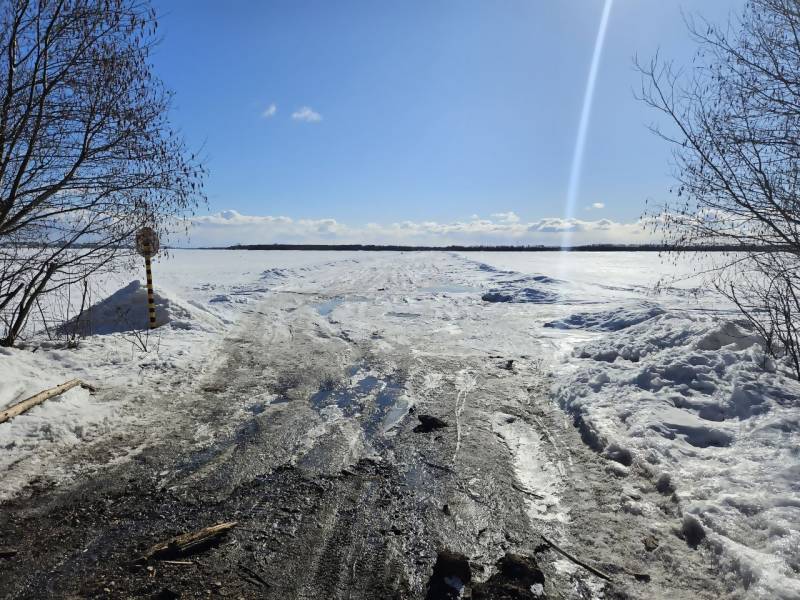 Проезд по ледовой переправе был приостановлен 4 апреля. Несмотря на морозную погоду, состояние дороги не позволяет ее больше эксплуатировать.