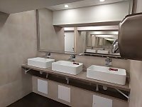 После капремонта здесь установлена современная сантехника, зеркала с подсветкой и даже есть музыкальное сопровождение.