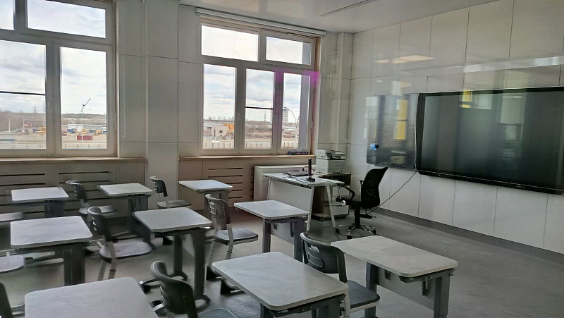 На сегодняшний день в школу поставлено около 90% оборудования, 70% мебели и техники полностью собрано и установлено.