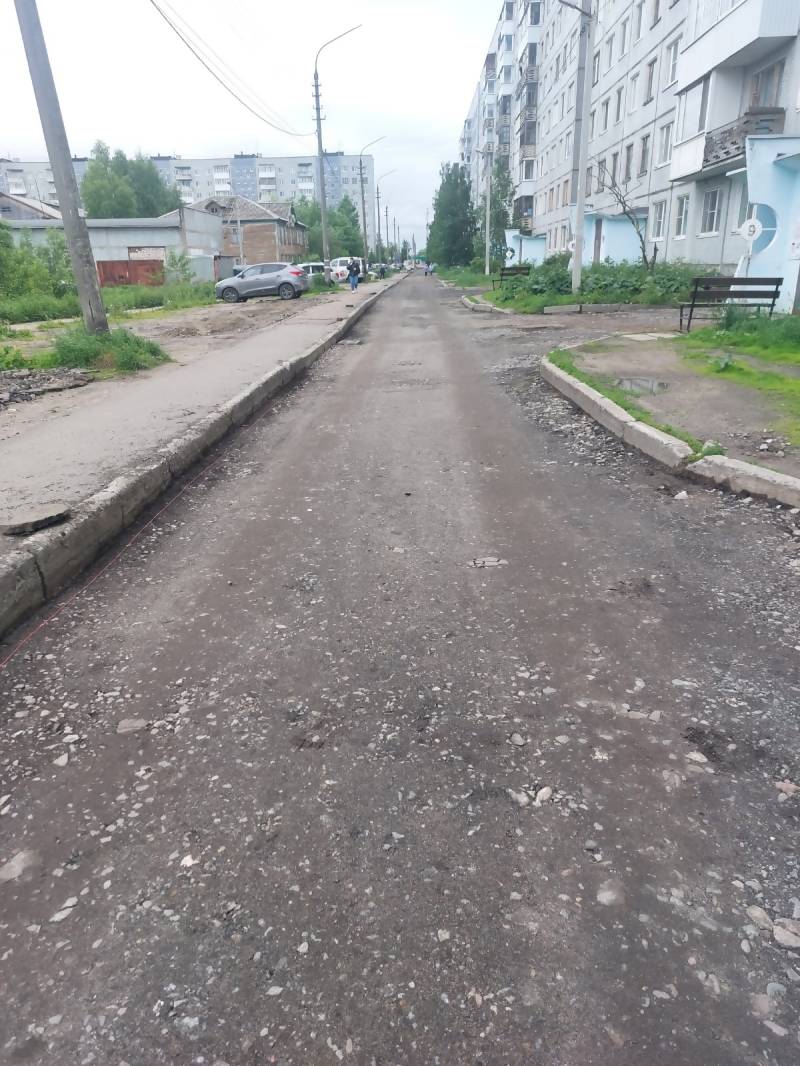 Здесь уже снято изношенное покрытие проезда, подрядчик УК подготовился к укладке нового асфальта.