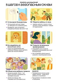 Изучите памятку "5 шагов к безопасным окнам" и поделитесь ею с другими родителями, чтобы защитить малышей от бед.