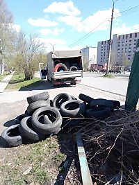 В округе Варавино-Фактория идет сбор и вывоз использованных шин