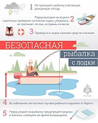 Рыбакам, выходящих на водоёмы на лодках необходимо тщательно проверить состояние лодки: убедитесь, не протекает ли она, исправны ли весла. Обязательно следует иметь в лодке спасательный круг, пояс или жилет, а также на случай непредвиденной ситуации – емкость, чтобы выбрать воду из лодки. Безопасно двигаться по воде можно только в правильно оборудованной и исправной лодке.