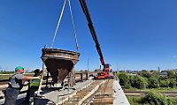 Специалисты выполняют установку цокольных коробок под стойки барьерного ограждения, а также готовятся к демонтажу балок на следующих двух пролетах. Ранее «Мостоотряд» выполнил замену двух балок из четырех.