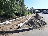 Также департаменту транспорта глава города поставил задачу заняться обустройством тротуара вдоль ул. Октябрят - от пр. Московского до въезда к фитнес-центру. С таким предложением от имени ветеранской организации на личный прием приходила жительница округа Майская горка]. Здесь подрядчик также выставляет борта, чтобы затем уложить асфальт на месте народной тропы.