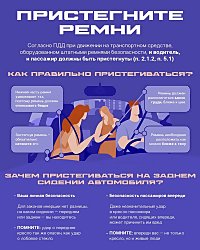 Пристегиваться в автомобиле необходимо не только на переднем, но и на заднем сиденье. Это простое правило может спасти жизнь и здоровье вас и ваших близких. По статистике, применение ремня безопасности уменьшает риск гибели водителя при лобовом столкновении в 2,3 раза, при боковом – в 1,8 раз, при опрокидывании – в 5 раз.Среди автомобилистов существует ряд опасных мифов о ремнях безопасности, которые опровергаются фактами.