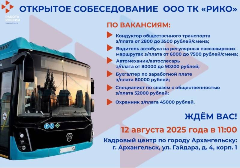 Открытое собеседование с работодателем состоится уже завтра, 12 августа, в 11.00 в кадровом центре Архангельска.⠀
