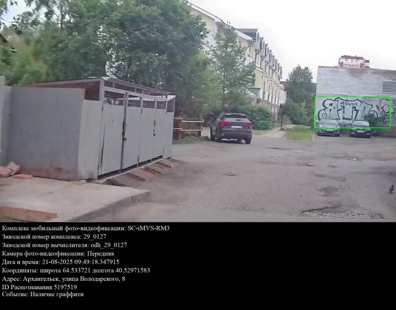 С помощью комплекса нейросетевого наблюдения "Архтелецентра" выявлены 52 факта наличия граффити на фасадах. Материалы направлены в управляющие компании для устранения нарушений, а в отношении 10 собственников нежилых объектов материалы будут переданы в административную комиссию.