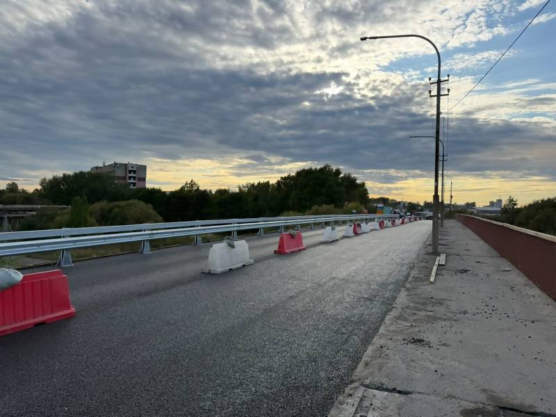 После замены балок на путепроводе было проведено фрезерование изношенного покрытия, а затем укладка асфальтобетона в два слоя. Сегодня движение переносится на левую сторону эстакады - для монтажа постоянного барьерного ограждения.