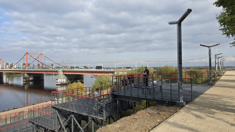 Отдельного внимания заслуживает спуск к воде, на котором тоже есть видовые площадки. Отсюда будет интересно наблюдать за соревнованиями парусного центра «Норд», любоваться рекой. Внизу есть качели и будет поставлена скамейка.