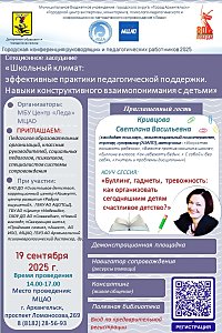 19 сентября в 14.00 в Доме молодежи состоится конференция «Школьный климат: эффективные практики педагогической поддержки».