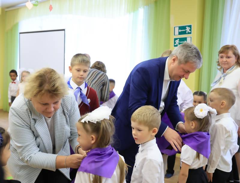 Здание детского сада «Родничок» готовя к капремонту в следующем году. Дмитрий Морев обсудил с педагогическим коллективом планы обновления и принял участие в торжественном посвящении воспитанников в орлята-дошколята. Это начальный модуль большой воспитательной программы Движения Первых.