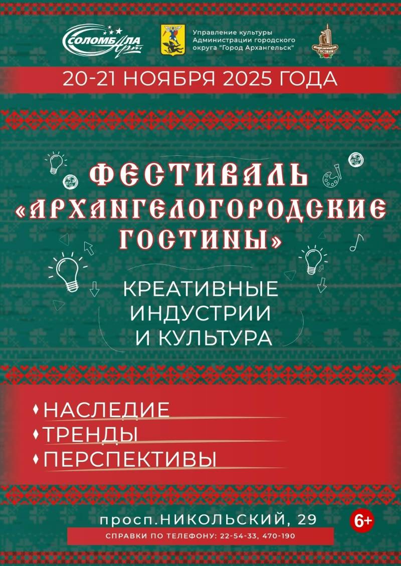 Фестиваль пройдет 20–21 ноября в культурном центре "Соломбала-Арт".Тема этого года — «Креативные индустрии и культура: наследие, тренды, перспективы».
