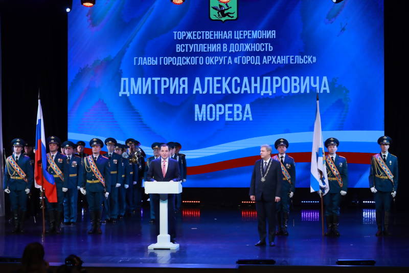 - Все эти годы я верой и правдой служил Архангельску. Сегодня, как и 5 лет назад,  хорошо понимаю и принимаю возложенную на меня ответственность и готов приложить все силы для развития города и помощи людям. Уверен, что роль и значение Архангельска для нашего региона и всей страны будет только возрастать, и это требует от нас своевременных и верных решений. В правительстве области, администрации города, научном и творческом сообществе, в деловой и общественной среде сложилась крепкая команда единомышленников. Наши цели открыты и изложены в моей программе развития города, а также документах стратегического планирования, разработанных под руководством нашего губернатора. Благодарю за оказанную мне честь и доверие продолжить работу на данном посту, - подчеркнул в своем выступлении Дмитрий Морев.