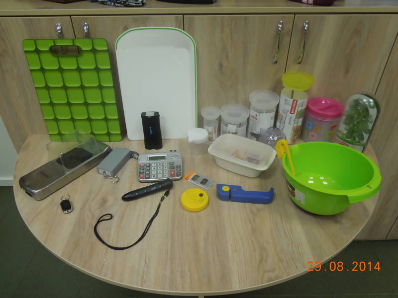 27 августа 2014 г. в Центре адаптивных технологий РООИ «Надежда» состоялся круглый стол «Социально - бытовая адаптация инвалидов по зрению». Во время встречи ведущая семинара - Нельзикова Надежда Валерьевна (председатель Архангельской областной организации ВОС) подробно рассказала о принципах работы с домашними помощниками, а именно: безменом, определителем цвета, кухонными весами, калькулятором, этикетками, ограничителем жидкости приборами для шитья и о многом другом. Уникальность оборудования, закупленного на средства гранта, заключается в том, что все устройства оснащены речевым выходом, и тем самым удобны для незрячих и слабовидящих пользователей.