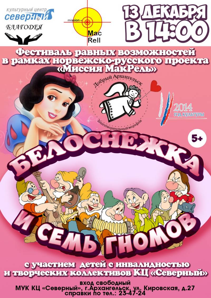Внимание! 13 декабря 2014 года в 14 часов всех неравнодушных архангелогородцев приглашаем принять участие в фестивале «Равные возможности», который пройдет в МУК «Культурный центр Северный»