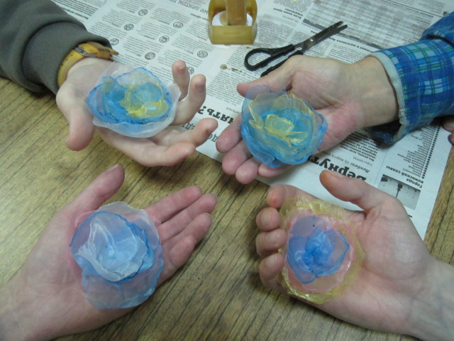 Волонтеры, совместно с сотрудниками Центра провели мастер-класс по изготовлению цветов из шелковой ткани и органзы.