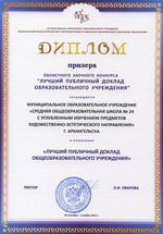 По итогам конкурса в номинации "Лучший публичный доклад дошкольного образовательного учреждения" призером объявлен детский сад № 96 "Сосенка" (г.Архангельск), в номинации "Лучший публичный доклад общеобразовательного учреждения" - школа № 24 с углубленным изучением предметов художественно-эстетического направления (г.Архангельск).