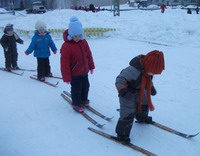 В детском саду № 39 "Солнышко" города Архангельска занятия по обучению детей ходьбе на лыжах начинаются с младшей группы. Лыжные прогулки проводятся при температуре воздуха от –5 градусов при полном безветрии и сухом рассыпчатом снеге. Продолжительность лыжных прогулок зависит от возраста и физической подготовленности детей.