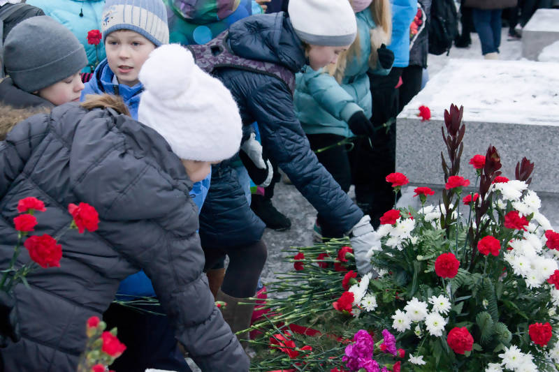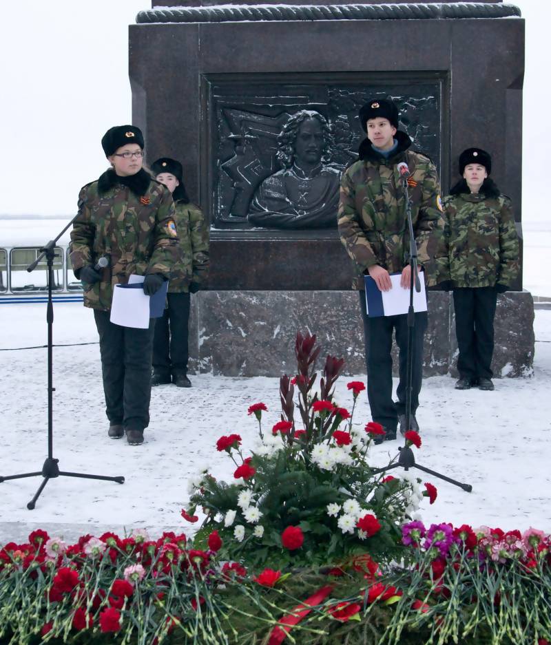 Участники Линейки Памяти возложили цветы к стеле "Город воинской славы".