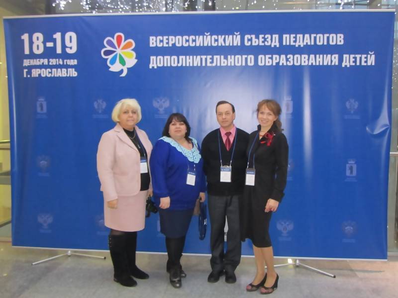 18-19 декабря 2014 года в городе Ярославле состоялся первый всероссийский съезд педагогов дополнительного образования, в котором приняли участие педагоги, ученые и эксперты, руководители образовательных организаций, представители органов управления в сфере образования, культуры, спорта и молодежной политики. Архангельскую область на съезде представляли директора учреждений дополнительного образования детей, среди которых - руководитель МБОУ ДОД ДПЦ "Радуга" Елена Валерьевна Добрынина. Организаторами съезда выступили Министерство образования и науки РФ, Министерство культуры РФ, Министерство спорта РФ, Правительство Ярославской области. Особое значение съезда связано с ролью системы дополнительного образования детей в формировании подрастающего поколения, определенной Президентом Российской Федерации В.В. Путиным в послании Федеральному собранию Российской Федерации, 4 декабря 2014 года. Участники съезда обсуждали комплекс вопросов, связанных с реализацией утвержденной правительством РФ Концепции развития дополнительного образования детей, выявлением ключевых направлений, основных целей и механизмов их реализации. Основное внимание на съезде было уделено вопросам межведомственного взаимодействия в сфере дополнительного образования детей. Вопросы обсуждения на съезде были распределены по следующим направлениям: эффективные модели управления в сфере дополнительного образования детей; модернизация содержания и форм образовательной деятельности: новые общественные вызовы в сфере дополнительного образования детей; развитие кадрового потенциала сферы дополнительного образования детей. В рамках видеоконференции с пожеланиями к участникам съезда обратились заместитель министра образования и культуры РФ Вениамин Каганов и заместитель министра культуры РФ Григорий Ивлиев, которые отметили особую значимость системы дополнительного образования, а также важность сохранения и развития ценнейшего опыта в сфере дополнительного образования детей в России. По итогам съезда была принята резолюция, в которой отражены дальнейшие действия министерств и региональных органов государственной власти в сфере дополнительного образования детей.