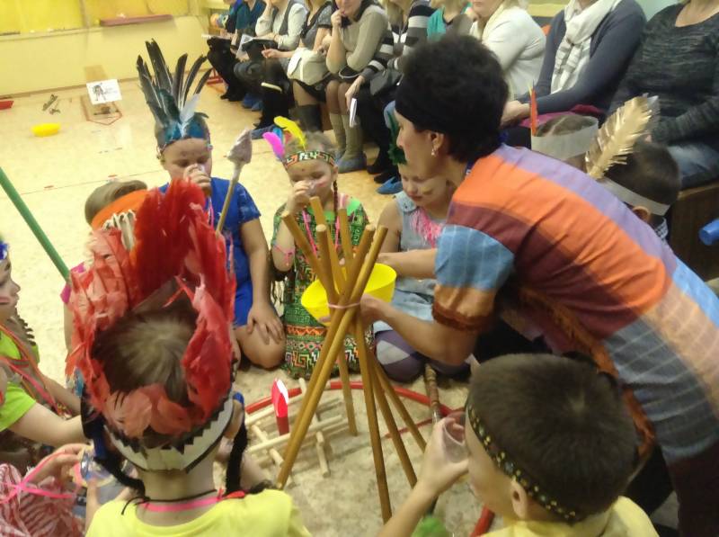 Инструктор по физической культуре Малышева Елена Васильевна и воспитатель Черняева Любовь Валентиновна провели спортивное развлечение с детьми подготовительных к школе групп Детских садов № 56 и 178. Мальчишки и девчонки в ярких костюмах с амулетами и копьями боевым кличем приветствовали вождя и гостей праздника. Маленькие индейцы продемонстрировали свои умения и навыки в разведении костра, постройке вигвама, охоте и рыбалке, танце. Эмоциональный заряд получили не только дети, но и взрослые.