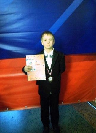 Евсеев Никита, ученик школы № 23 имени А.С. Пушкина, обучающийся театра эстрады "Эксперимент" получил бронзовую медаль. Никита читал сказку Б. Шергина "Про Шиша".