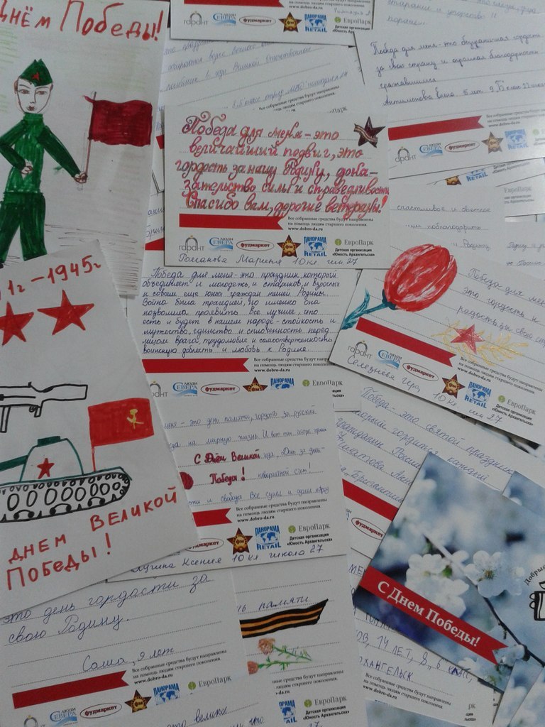 Активисты Детской организации "Юность Архангельска" и школьники города стали участниками акции, приуроченной к празднованию 70-летия Победы - "Дети о Победе". Организатором данного мероприятия выступил Благотворительный фонд развития сообщества "Гарант" и Архангельский Центр социальных технологий "Гарант" в рамках Благотворительного марафона "Добрый Архангельск". Напомним, что организация "Юность Архангельска" является официальным партнером данного марафона и активисты ЮНЫ уже не раз становились участниками мероприятий в рамках "Доброго Архангельска". В апреле 2015 года среди школьников были распространены специальные открытки с символикой 9 мая, на которых необходимо было написать мини-сочинение "Победа для меня - это …". Открытки могли сопровождаться рисунками, также обязательным условием было наличие подписи автора с указанием имени и возраста или класса, школы. Школьники Архангельска с большим почтением и уважением относятся к этому празднику. Всего несколько предложений содержат открытки, но сколько в них эмоций, сколько важных и трепетных слов. Некоторые ребята указали в открытках и тот факт, что они гордятся тем, что живут в городе воинской славы. И это действительно не только очень почетно, но и ответственно. Всего в акции приняли участие активисты и школьники из 40 образовательных организаций города. Заполненные открытки уже начали распространяться волонтерами Благотворительного марафона "Добрый Архангельск" на улицах нашего города в знак сделанных посильных пожертвований. Собранные средства будут направлены на помощь нуждающимся людям, которые родились во время войны ("Дети Победы"). 9 мая открытки будут преподноситься в качестве подарков ветеранам Великой Отечественной войне.