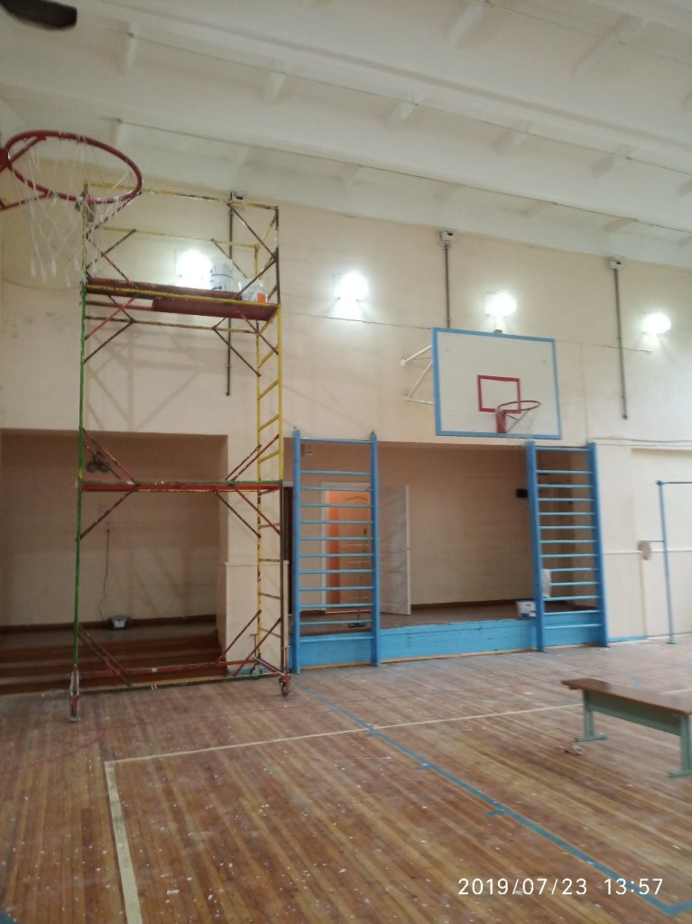 Также в рамках текущего ремонта отремонтирована часть кабинетов, производится побелка потолка в спортивном зале, окраска стен.