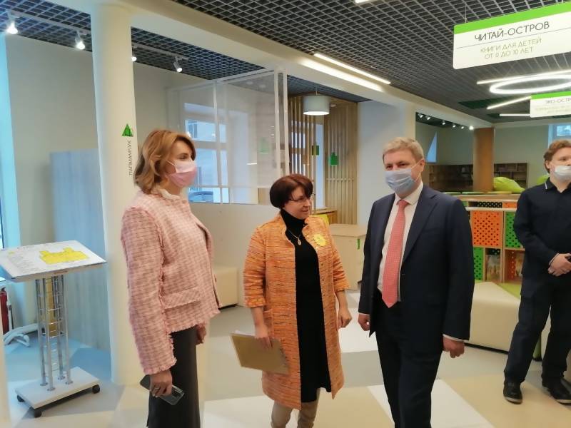 Сегодня первые лица города – Дмитрий Морев и Валентина Сырова; заместитель председателя правительства Архангельской области Иван Дементьев посетили обновленное учреждение культуры.